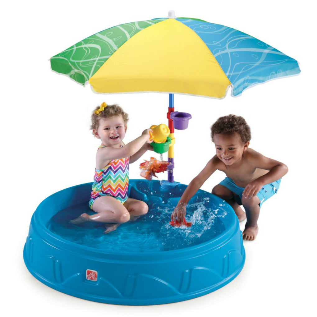 La Play & Shade Pool de Step2 significa diversión para todos y una fiesta en la piscina para niños! Hecha en EUA con partes de EEUU e importadas. Sombrilla hecha en China.