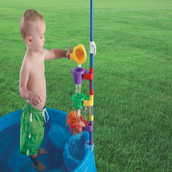- Incluye 3 embudos y rueda giratoria de agua que se conectan al poste de la sombrilla