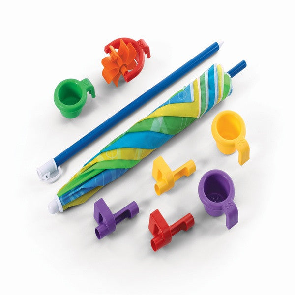 - Incluye 3 embudos y rueda giratoria de agua que se conectan al poste de la sombrilla