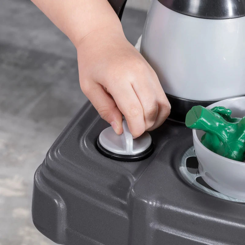 El diseño compacto de este juego de cocina incluye todas las características realistas que esperarías en una cocina de juego imaginario. ¡Ideal para jóvenes chefs que están aprendiendo sus habilidades de cocina y horneado en el juego imaginario, los más pequeños pueden explorar características divertidas como el horno y las puertas del refrigerador que funcionan, fingir lavar los platos en el fregadero moldeado con grifo y más! ¿Recibes invitados? Prepara una fresca jarra de café con la cafetera incluida. Los niños pueden cocinar con la característica de la cocina que incluye una placa con un botón giratorio para una experiencia sensorial adicional. El tamaño más pequeño de la Cocina Pintoresca es lo suficientemente grande para incluir todas las características esenciales de la cocina, pero lo suficientemente pequeño como para encajar bien en cualquier hogar. Y aunque este juego de cocina imaginario es un modelo más pequeño, ¡definitivamente no escatima en espacio de almacenamiento! Fabricado en EE.UU. con piezas tanto estadounidenses como importadas.