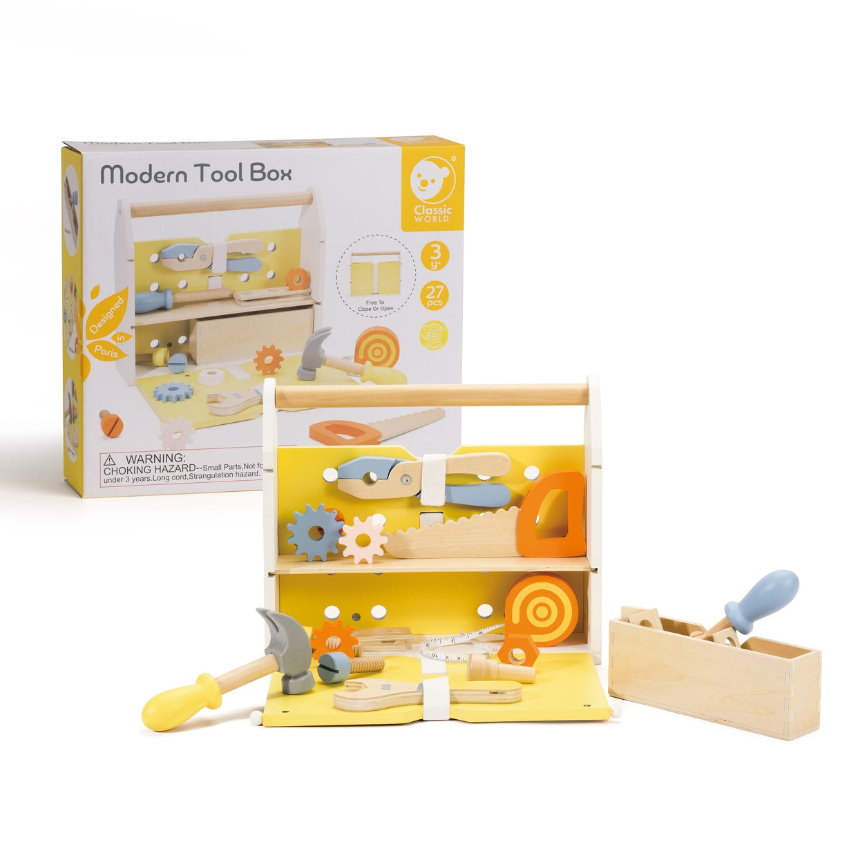 Vaya más allá de las reglas para practicar la motricidad fina y la creatividad de los niños, quienes podrán familiarizarse con cada herramienta. Este juego moderno de carpintero incluye muchas herramientas útiles como un martillo, un destornillador, una llave inglesa, un engranaje, etc. Correa de fijación disponible para mantener la caja limpia y ordenada. Estimule enormemente el interés de los niños en instalar y reparar estructuras, mientras cultiva el hábito de la organización en ellos.