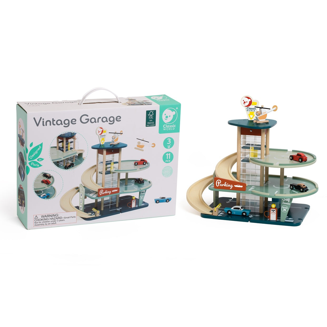 El ascensor da servicio a los 3 niveles y está coronado por una plataforma con un helicóptero. La base está equipada con conexiones para crear una pista. Este juguete desarrolla la motricidad fina y el lenguaje.