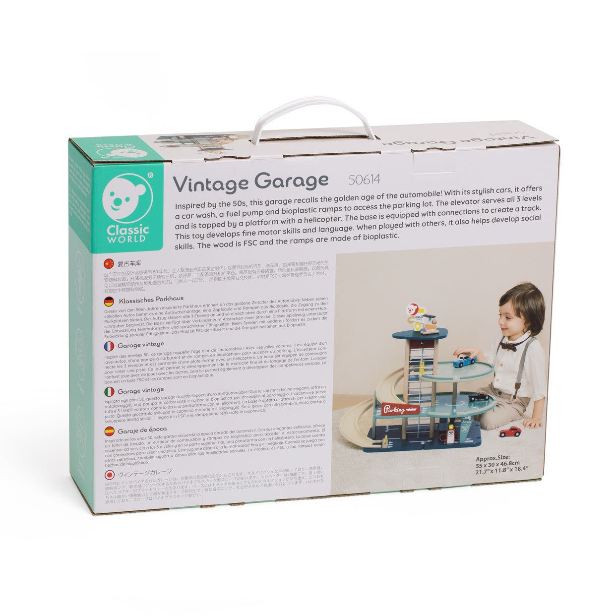 Inspirado en los años 50, este garaje recuerda la época dorada del automóvil. Con sus elegantes autos, ofrece lavado de autos, surtidor de combustible y rampas de bioplástico para acceder al estacionamiento.