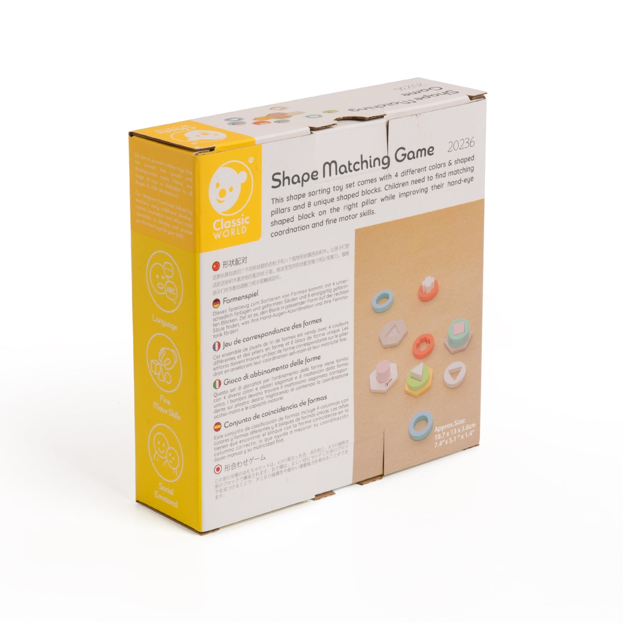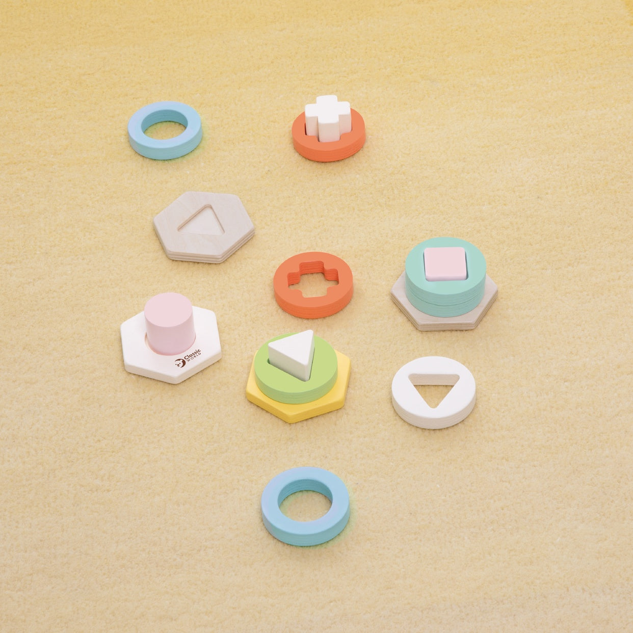 Este juguete para clasificar formas viene con 4 colores pilares de formas y colores diferentes, así como 8 bloques con formas únicas. Los niños necesitan encontrar bloques con formas iguales y ponerlas en el pilar correcto. Aprenderán diferentes colores y formas, y practicarán su coordinación ojo-mano y su motricidad fina.