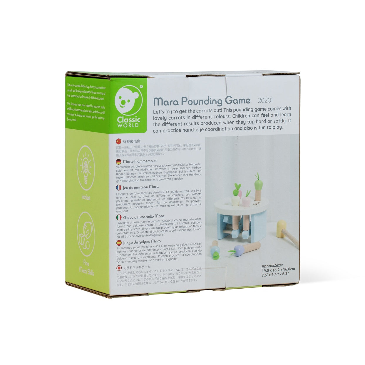 El Juego de Golpear Mara cuenta con preciosas zanahorias de diferentes colores. Los pequeños pueden sentir y aprender los diferentes resultados que se producen cuando golpean fuerte o suavemente. El bebé puede practicar la coordinación ojo-mano y también es divertido jugar.