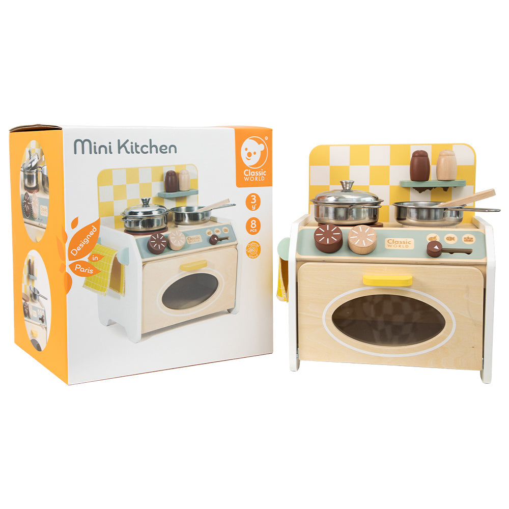 ¡Esta linda Mini Cocina se acomoda perfectamente a cualquier superficie de tu casa! Tiene dos placas de cocción y su horno.