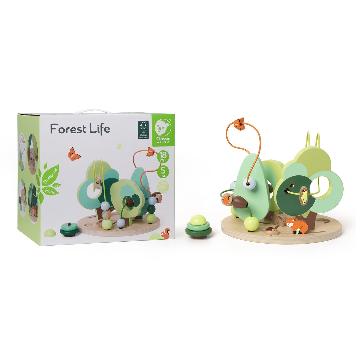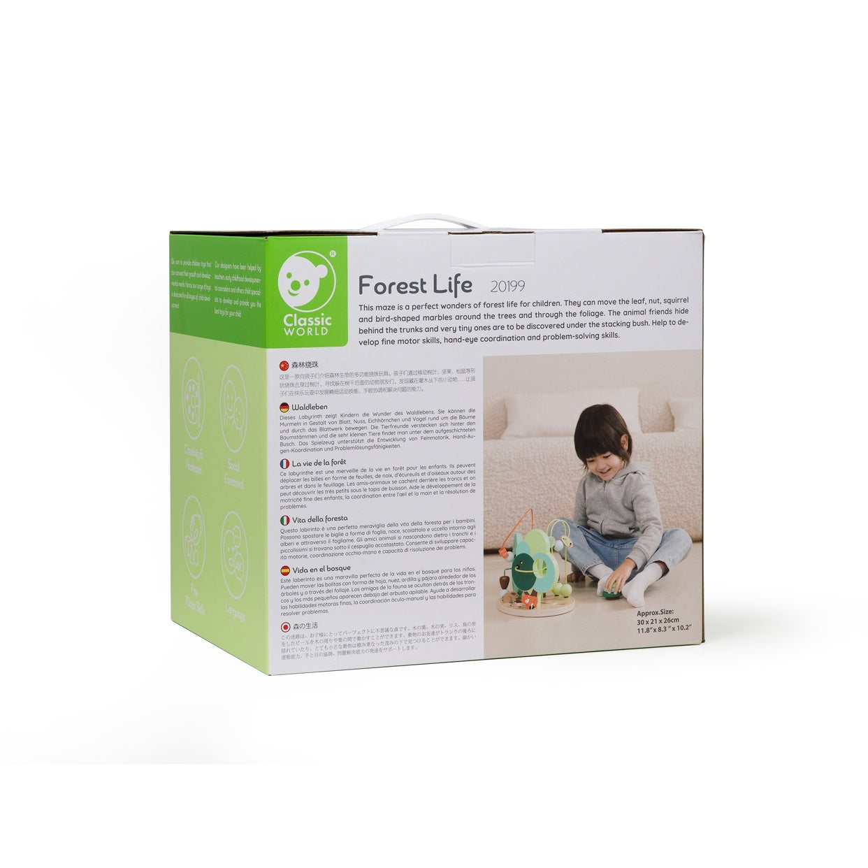 Este laberinto es una maravilla perfecta de la vida forestal para los niños. Pueden mover canicas con forma de hojas, nueces, ardillas y pájaros alrededor de los árboles y a través del follaje. Los amigos animales se esconden detrás de los baúles y los más pequeños se descubren debajo del arbusto apilable. Ayuda a desarrollar la motricidad fina, la coordinación ojo-mano y la capacidad de resolución de problemas.
