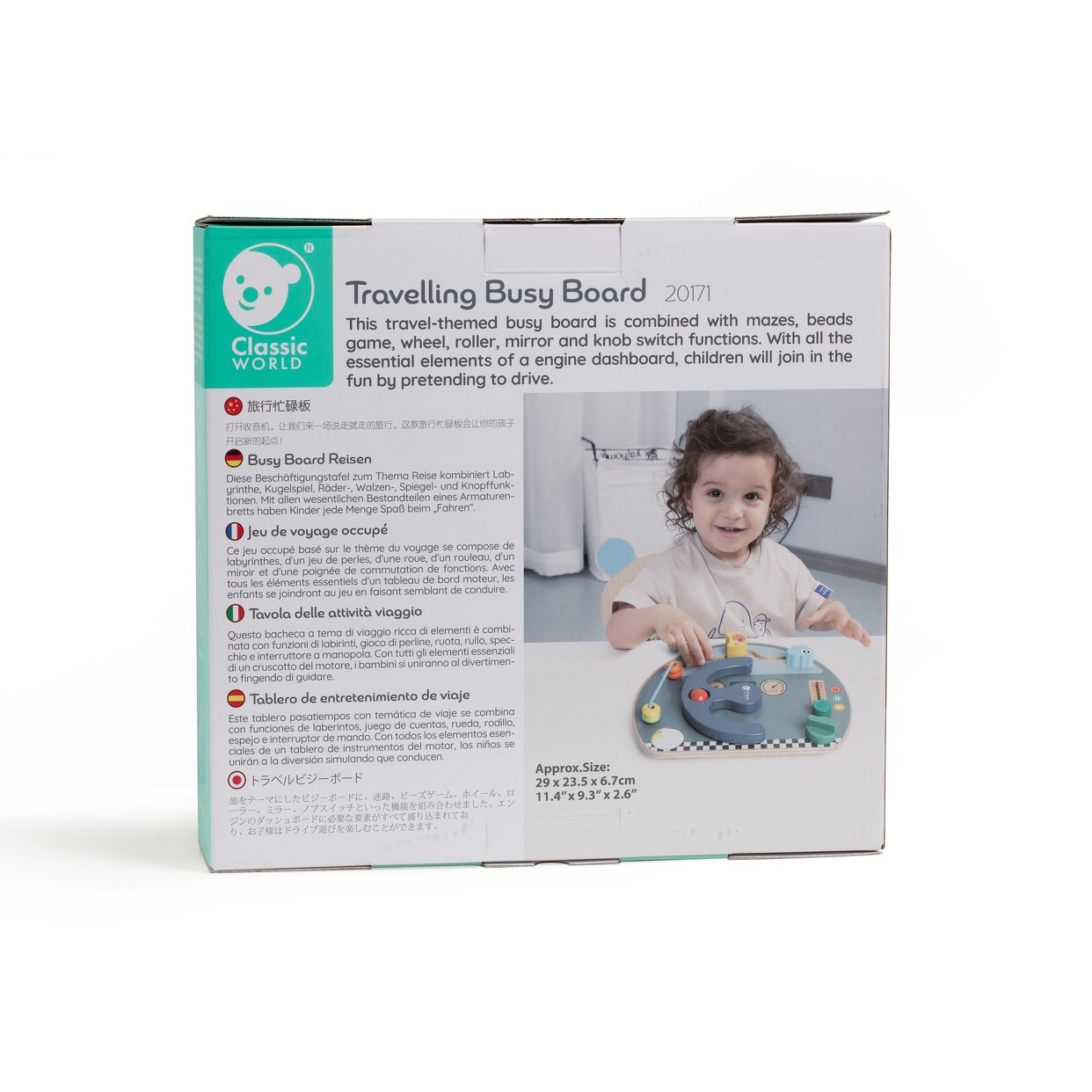 Este tablero para mantener a los pequeños ocupados con temática de viajes combina laberintos, juegos de cuentas, ruedas, rodillos, espejos y funciones de interruptor de perilla. Con todos los elementos esenciales de un tablero de motor, los niños se unirán a la diversión simulando conducir.