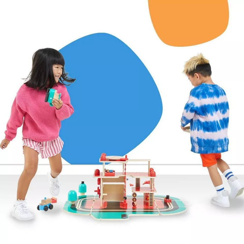 Este set de juego de madera comienza como un clásico camión de bomberos antes de transformarse en una estación de bomberos de varios niveles. Este set lleno de acción cuenta con engranajes funcionales, sorpresas ocultas y vehículos de empuje que mantendrán la imaginación de tu hijo comprometida y estimulada. El set completo de 21 piezas se guarda fácilmente en el camión de bomberos para una limpieza y almacenamiento sencillos, lo que lo convierte en el juguete perfecto para llevar a cualquier lugar.