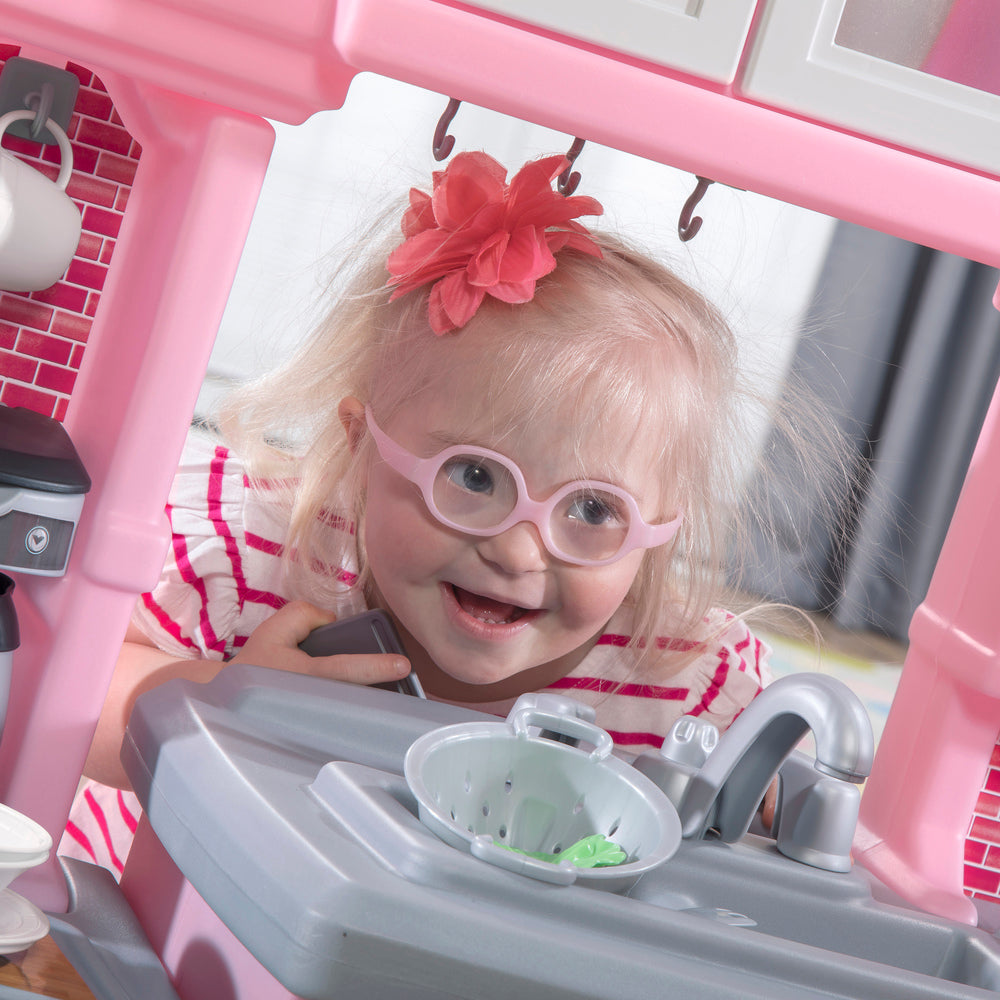 A los Mini Chefs les encantará cocinar con esta Play Play by Step2. Este juego de cocina cuenta con una estufa interactiva que se ilumina y emite sonidos de cocina, una cafetera estilo Keurig con tres cápsulas de café, un horno doble y una nevera grande. Los niños pueden usar la ventana de paso para jugar al restaurante con sus amigos y hermanos. La diversión del juego imaginativo es infinita con esta cocina para niños. Fabricado en EE. UU. De Estados Unidos y piezas importadas.