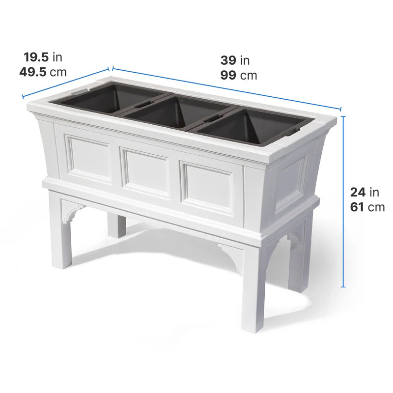 Actualiza la apariencia de tu hogar con plantas frescas en el hermoso Atherton Raised Planter™ en tu porche, pasillo o patio. Diseñado cuidadosamente con un estilo transicional, este gran macetero complementará la belleza de tus plantas y flores estacionales durante años. Nuestra jardinera elevada eleva tus flores y verdor favoritos a 61 cm del suelo para un toque llamativo de color que se integra perfectamente en tu espacio. Con los 3 maceteros extraíbles incluidos, es fácil reorganizar las plantas y usar menos tierra en lugar de llenar todo el macetero. Con detalles clásicos moldeados y nuestra reconocida construcción de alta calidad, tu jardinera mantendrá su rico color blanco con poco mantenimiento requerido. Fabricado en EE.UU. con piezas tanto estadounidenses como importadas.
