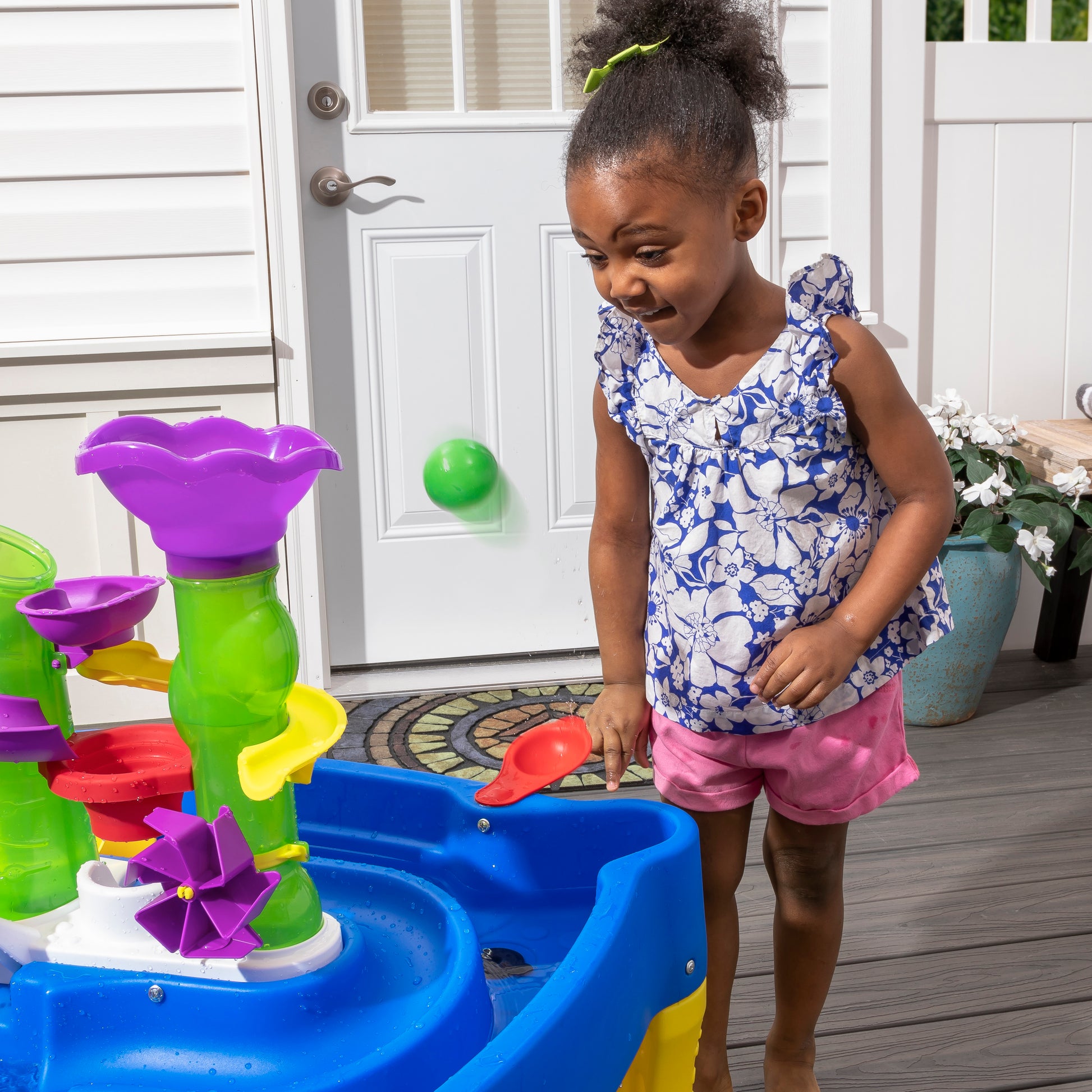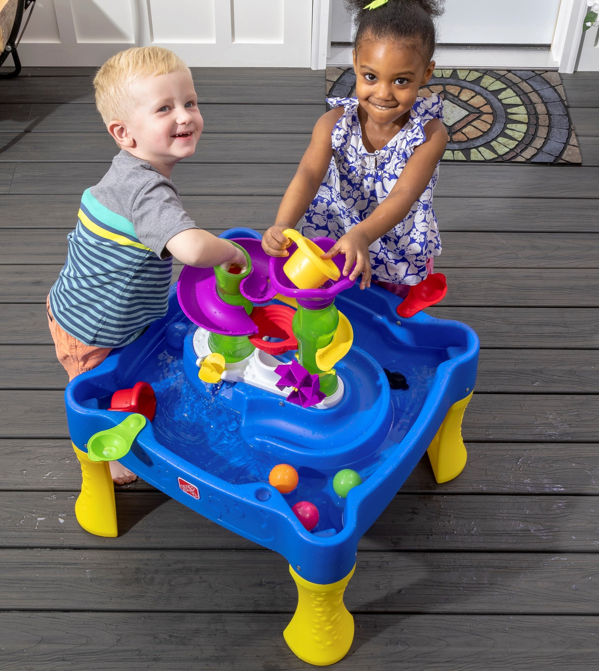 ¡Prepárate para divertirte con la mesa Step2 Rise & Fall Water & Ball Table! Esta mesa de actividades para niños está llena de sorpresas, combinando el juego de pelota de juguete de poner y llevar con la diversión de la acción de la mesa de agua. ¡Suelta las bolas de juego en una torre y vierte agua en la otra! Los más pequeños pueden ver cómo las pelotas de juego suben para caer en el laberinto, o retroceden a través de las torres de agua en espiral como por arte de magia. A medida que el agua se vierte en el laberinto, los niños pequeños descubrirán la causa y el efecto a medida que los remolinos se activen para salpicar agua en la cuenca debajo. Usando las tazas para verter, las aletas laterales y las pelotas de juego, los niños practicarán sus habilidades motoras finas durante el juego, así como sus habilidades sociales cuando los amigos se detengan para pasar el día. Hecho en los EE. UU. De piezas importadas y estadounidenses.- El aumento del agua empuja las bolas de juego al laberinto, activando el juego de causa y efecto.