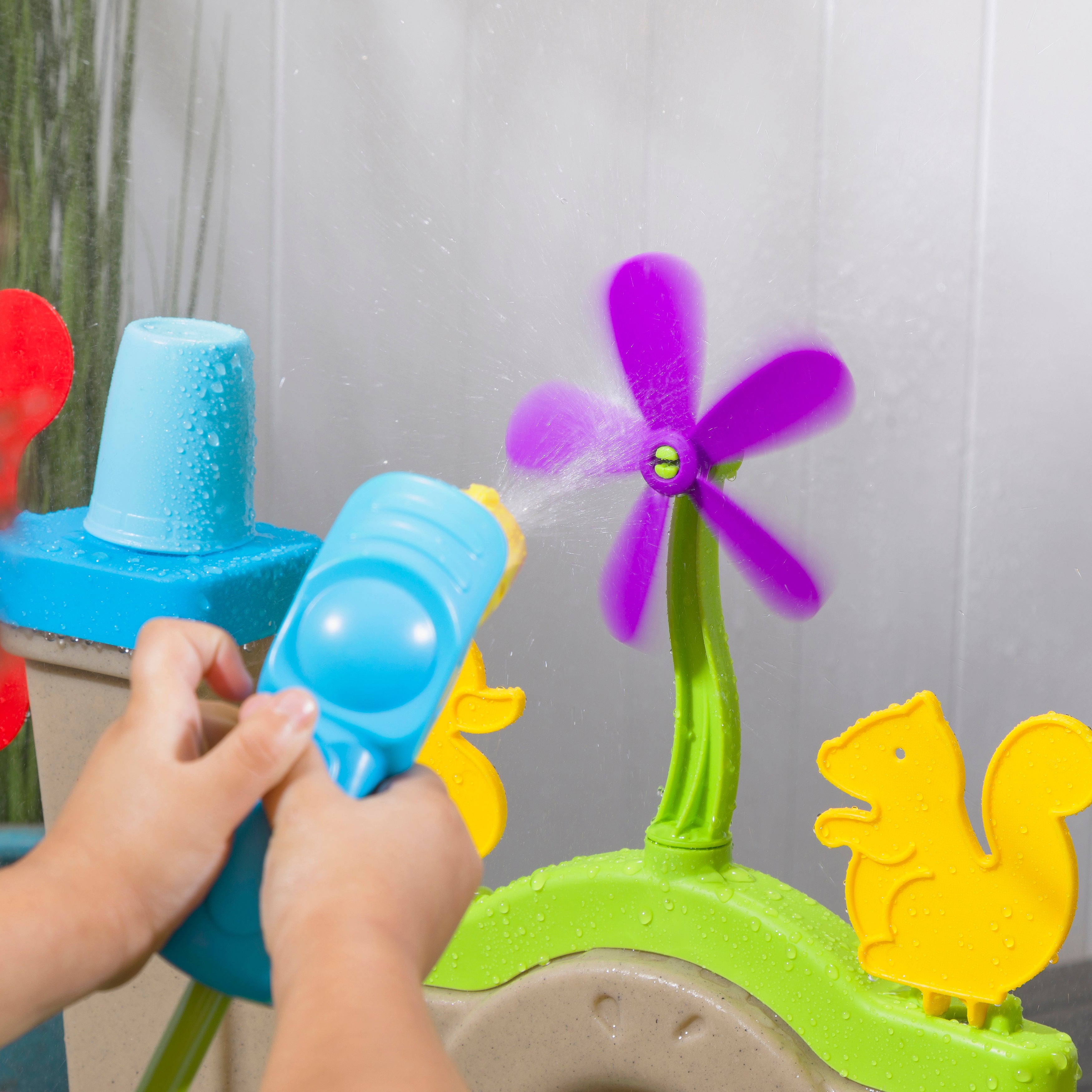 ¡Trae la emocionante diversión acuática con juegos de destreza a tu patio trasero con Step2 Waterpark Arcade! Toneladas de objetivos de juegos de agua para niños están alineados y listos para que los pequeños los salpiquen con el lanzador de agua, todos asegurados con una pared grande y una base ancha para mayor estabilidad. ¡Conecte fácilmente el lanzador de agua a una manguera de jardín estándar para que el agua fluya y comience a jugar fuera del agua! Los más pequeños practicarán sus habilidades motoras finas mientras aprietan el gatillo para usar el lanzador de agua para disparar agua a cada objetivo, derribándolos y activando los hiladores para crear un gran chapoteo. Golpea el centro de la diana para llenar el cubo de derrames que se encuentra debajo. ¡Quien haga que el cubo se derrame en el recipiente es el ganador! El juego de agua para el estilo de un solo usuario de los niños es una excelente manera de enseñar a los más pequeños sobre el intercambio, la paciencia e incluso la amabilidad animando a los amigos mientras golpean cada objetivo. Hecho en los EE. UU. De piezas importadas y estadounidenses.- Practique la coordinación mano-ojo y las habilidades motoras finas con el lanzador de agua para disparar agua a los objetivos.