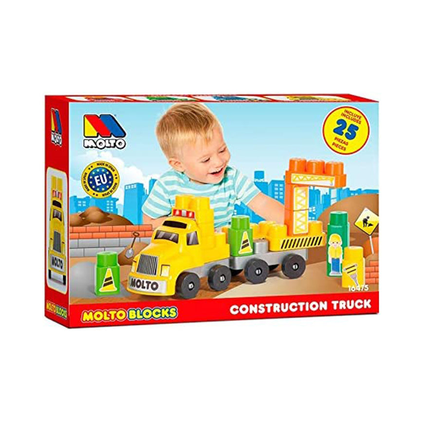 Nuevo juego de bloques de construcción compuesto por 25 piezas de distintos colores y tamaños para que construyan el camión de construcción de la forma más divertida.