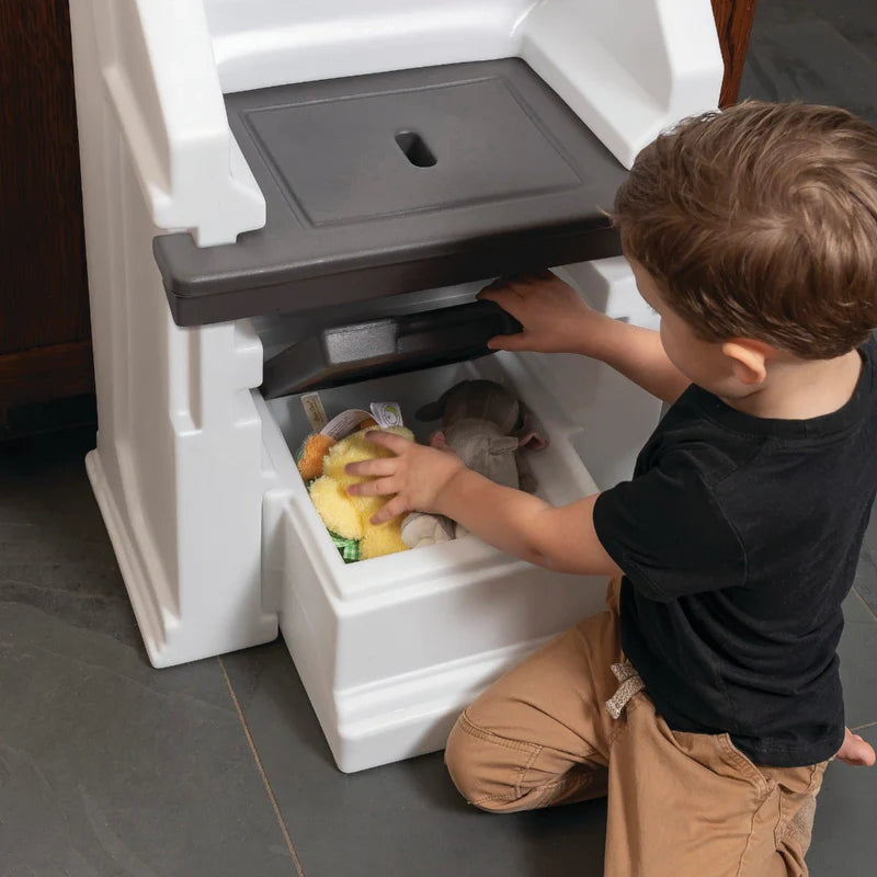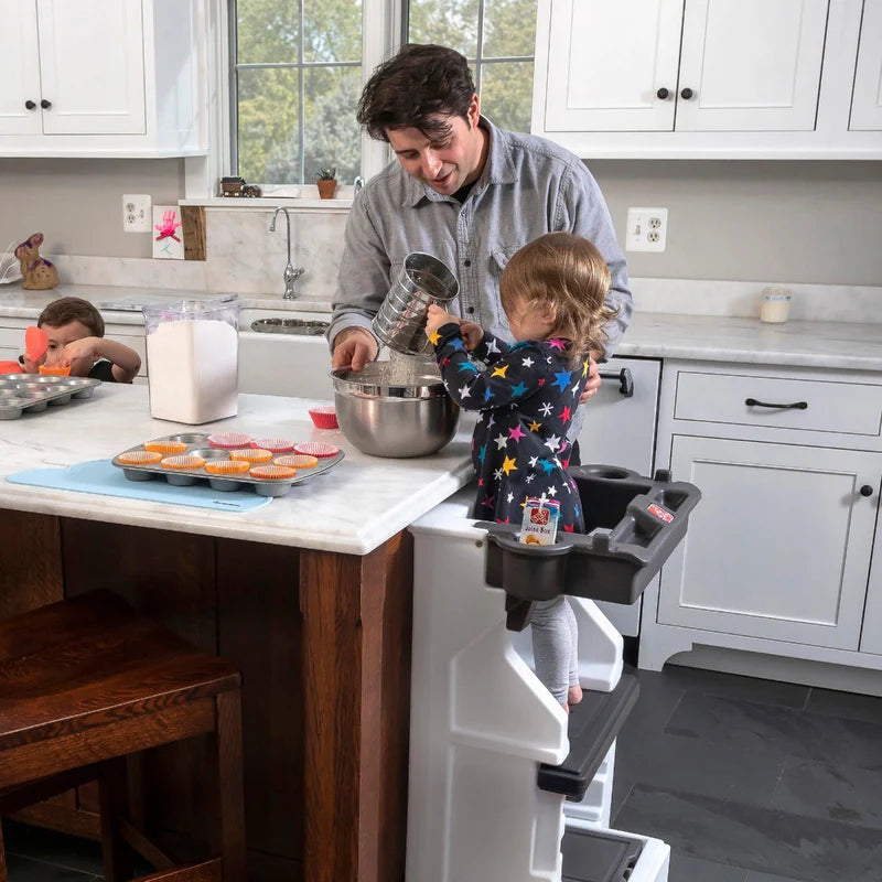 ¡A los niños les encanta ayudar! La Torre Móvil Helper™ para Niños proporciona una manera innovadora, segura y robusta de elevar a los más pequeños hasta el mostrador. Con una barra cerrada alrededor de la plataforma superior del taburete, tus pequeños ayudantes pueden participar con confianza en divertidas actividades de horneado, como medir ingredientes, mezclar masa o decorar galletas. La Torre Móvil Helper™ para Niños también es ideal para manualidades, cepillarse los dientes y lavarse las manos. Construida para durar, este nuevo diseño es excepcionalmente indestructible y crecerá con tu hijo durante años. ¡Incluso cuenta con varios compartimentos de almacenamiento para bebidas, utensilios de cocina para niños, materiales de arte y más! Fabricado en EE.UU. con piezas tanto estadounidenses como importadas.