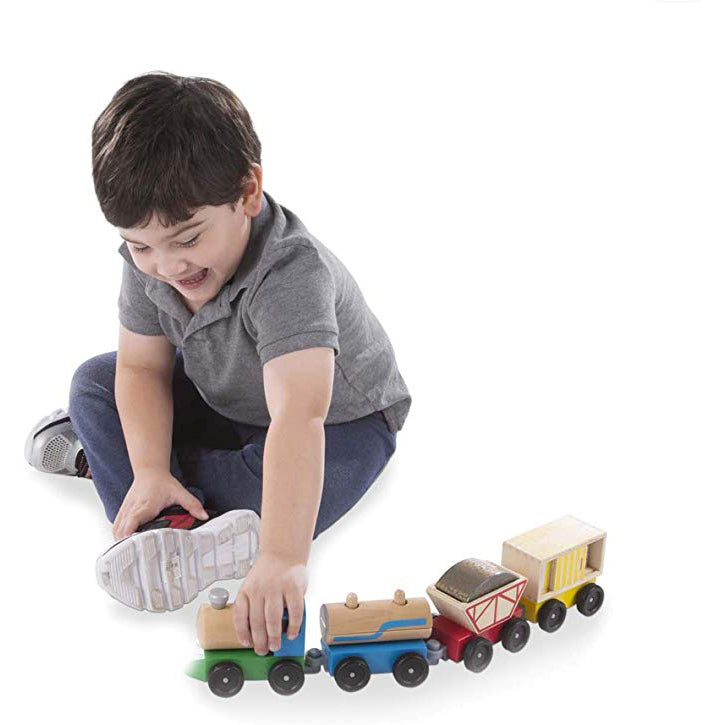 ¡Todos a bordo para un poco de diversión práctica en el tren Choo-Choo! Este tren de madera con ruedas cuenta con cuatro vagones incluye un motor, un vagón de carbón, un vagón y un camión cisterna que se conectan y desconectan fácilmente con un robusto acoplador. Las cajas de carga extraíbles caben en el vagón y hay una pieza de carga reversible para que el tren pueda transportar carbón u oro. El tanque de agua se separa y cabe en el tren de diferentes maneras, y las puertas del vagón se abren y cierran, ayudando a los niños de tres años en adelante a desarrollar habilidades motoras finas y coordinación mano-ojo. La construcción robusta de madera significa que este tren pasará años de juego creativo.